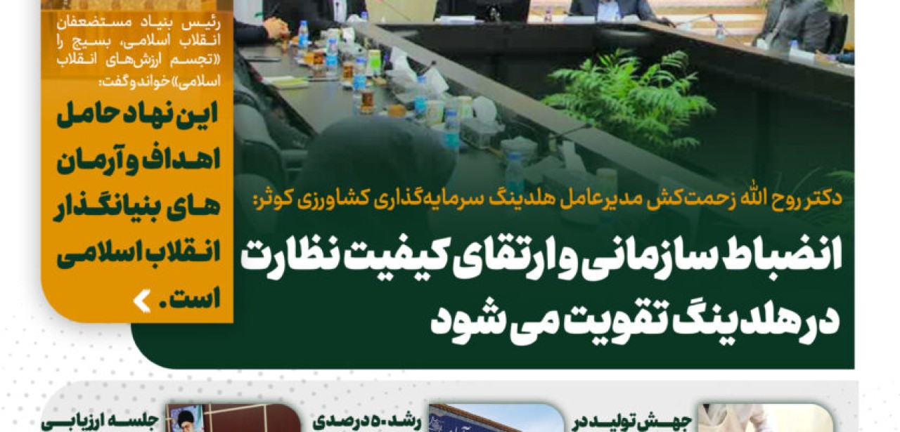 این گزارش می‌افزاید، در بخش دیگری از این شماره به سخنان رئیس بنیاد مستضعفان انقلاب اسلامی اشاره شده است که بسیج را «تجسم ارزش‌های انقلاب اسلامی» دانسته و این نهاد را حامل آرمان‌های امام خمینی (ره) معرفی کرده است. همچنین برداشت 6٫250 کیلوگرم خاویار امپریال به‌عنوان یکی از نشانه‌های جهش تولید در زنجیره آبزی‌پروری هلدینگ ثبت شده است.