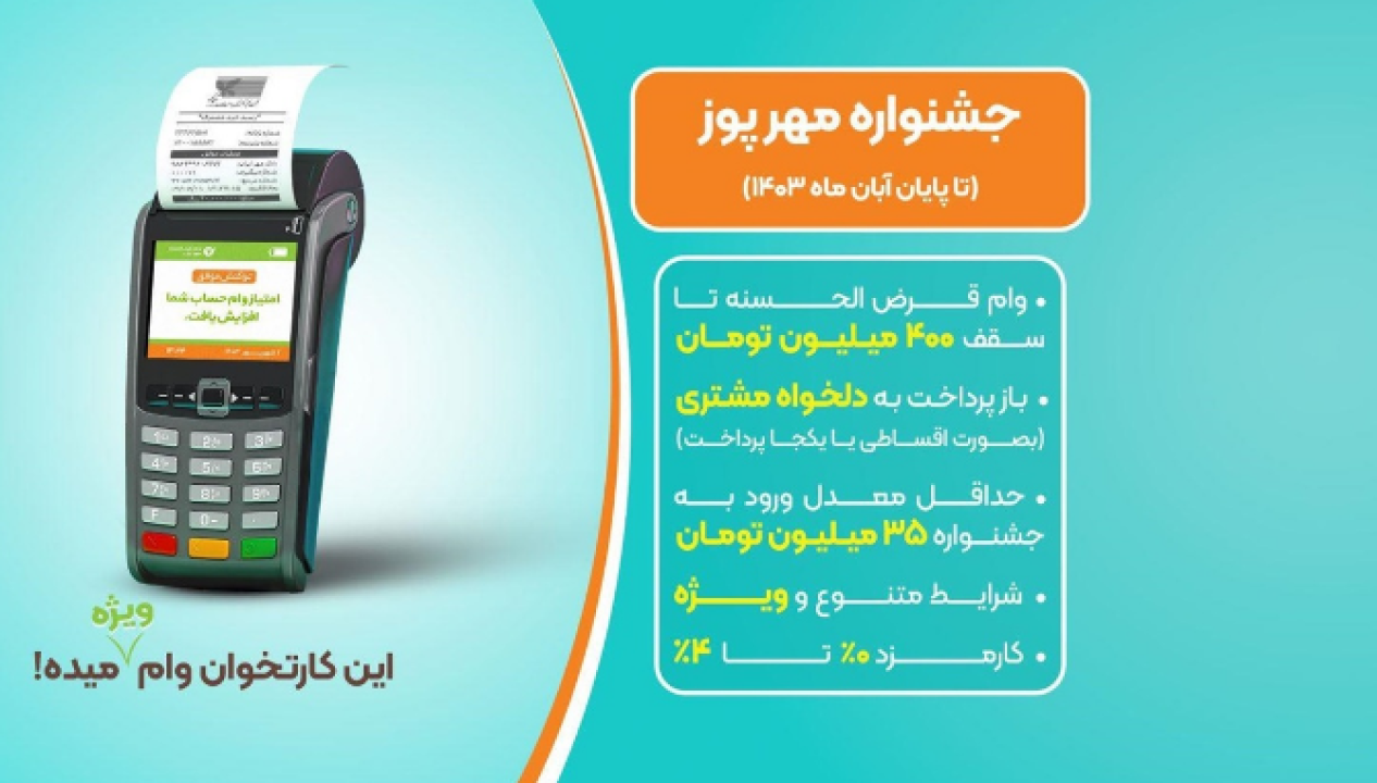 دومین جشنواره «مهرپوز» بانک قرضالحسنه مهر ایران آغاز شد و تا پایان آبان ماه ادامه دارد. بانک قرضالحسنه مهر ایران به منظور افزایش توان مالی دارندگان دستگاههای کارتخوان و درگاههای پرداخت غیرحضوری، برای دومین بار اقدام به برگزاری این جشنواره کرده است.