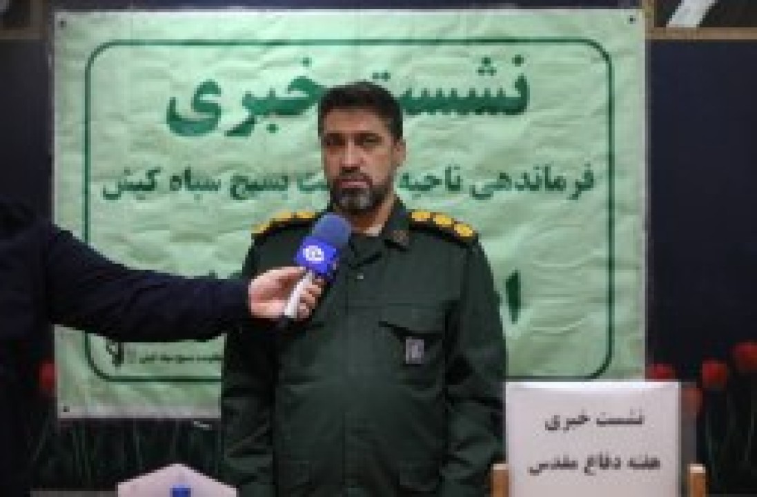 سرهنگ پاسدار محمد میرزاده، فرمانده ناحیه مقاومت بسیج سپاه کیش با بیان این که به مناسبت هفته دفاع مقدس، 60 برنامه متنوع در جزیره کیش برگزار می شود افزود: برنامه‌ها با شعار محوری "ما فاتحان قُله ایم" اجرا می‌شوند و یگان‌های نظامی مستقر در جزیره شامل پدافند هوایی ارتش، سپاه پاسداران، فرماندهی انتظامی ویژه، بسیج ، سازمان منطقه آزاد کیش و نهاد امامت جمعه در اجرای آن مشارکت دارند.